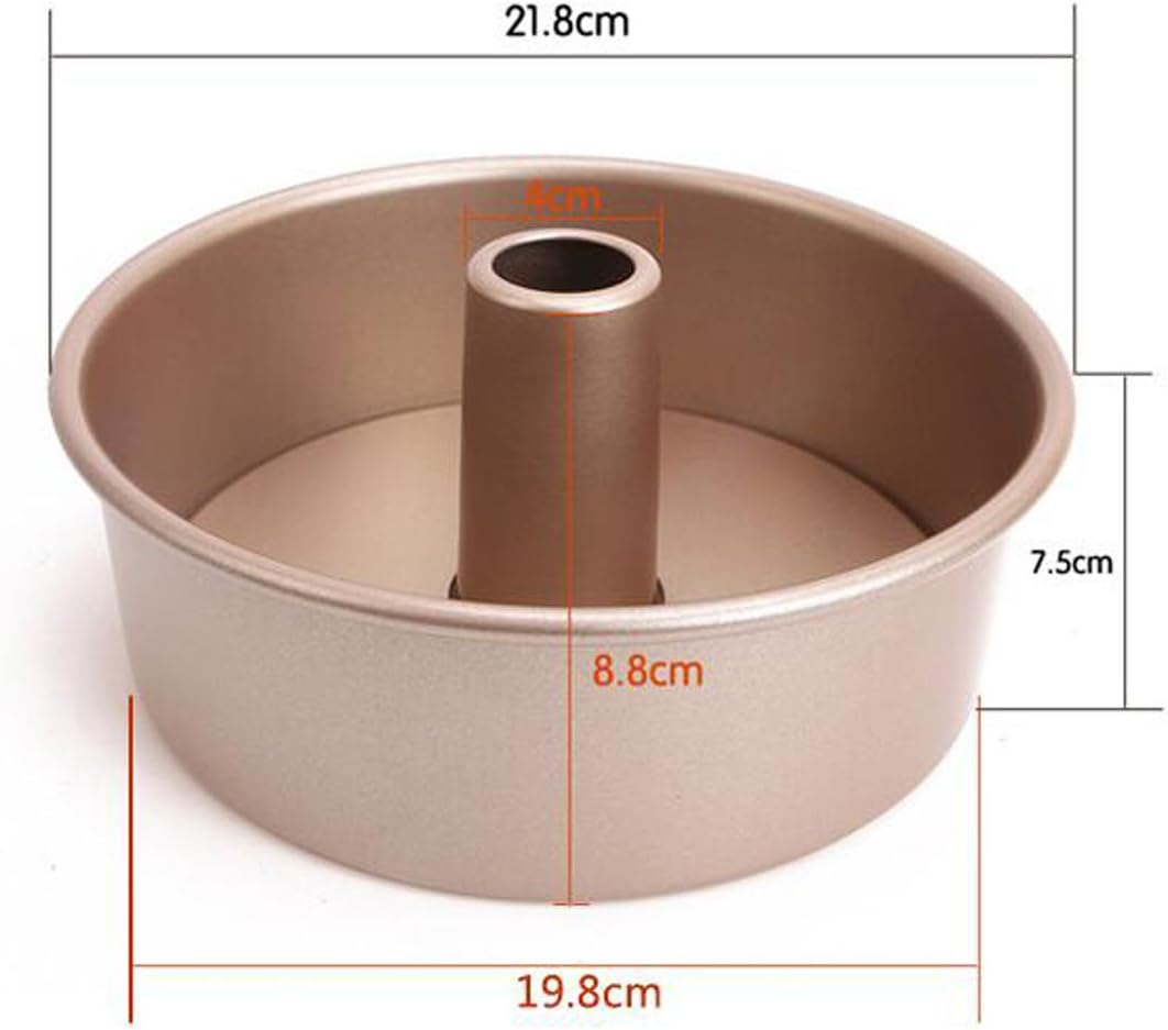 This Round Cake Pan is make of 0.5mm thicken carbon steel double layer non stick coating. Well made carbon steel construction for durability and long-serving time.This fluted cake pan can be used in multiple ways, for making chiffon cake or birthday cake or any other cake you want. Great gifts for those people who love making cakes. Choose our cake pan, choose healthier life.SPECIFICATIONQuantity: 1 pieceMaterial: carbon steelCraft : Superior Nonstick Finish, Smooth Roll Edge, Sturdy Construction, Straight Size.Features: Easy Clean, Healthy, Oven & Freezer Safe, Heavy DutyDimension:External dia: 21.8cm / 8.6 inchInternal dia: 19.8cm / 7.8 inchHeight: 7.5 cm / 2.95 inchAdvantage:Easy Cleaning- Less stick and easy to clean, use soft stuff and water to clean.Leakproof- 2.95-inch rim cake pan are leakproof design, Superior to springform cake panRust Free - Make of Carbon Steel, High resistance to rust and cook healthily.Heavy Duty - High quality and durable, Feel solid and not easy to smash or warpUSING INSTRUCTION1.Please wash with water and clean them with soft dishrag to avoid scratch.2.Please hand dry them immediately after every using, stored in dry place for durability.